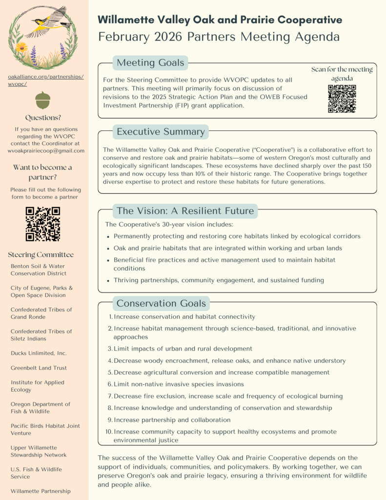 Willamette Valley Oak and Prairie Cooperative Partners Meeting